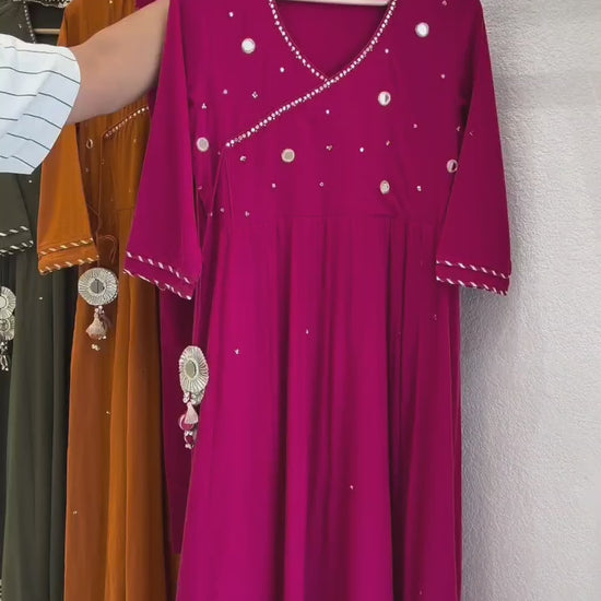 Megenta bright pink Angrakha pattern three piece set (A1119)