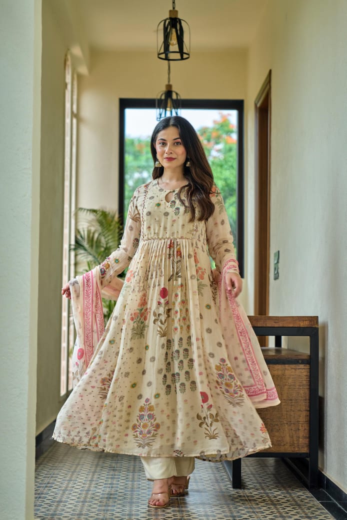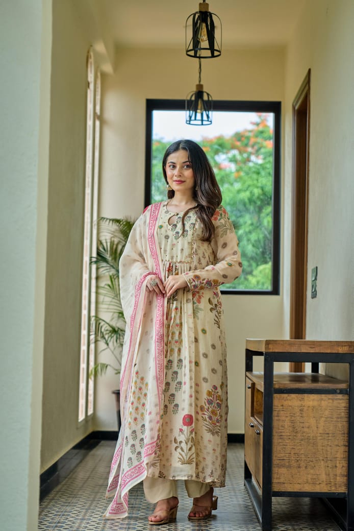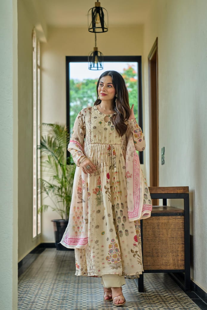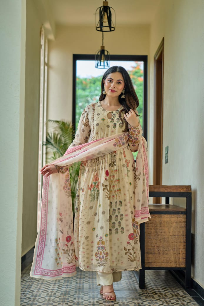 Off white oraganza with banarasi buti designer three piece set (A408)