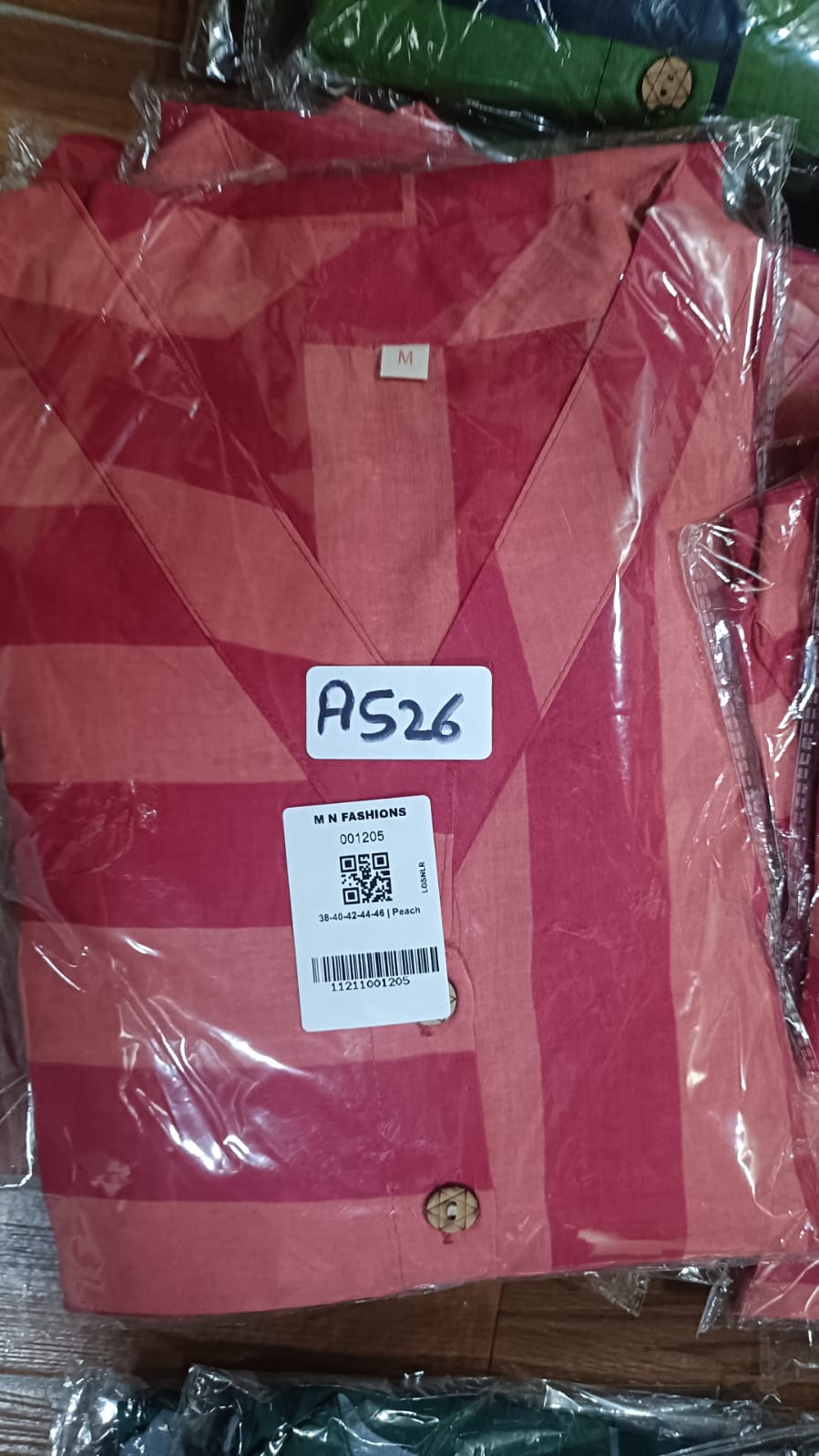 Pink with peach pure cotton strips two piece cordset (A526)