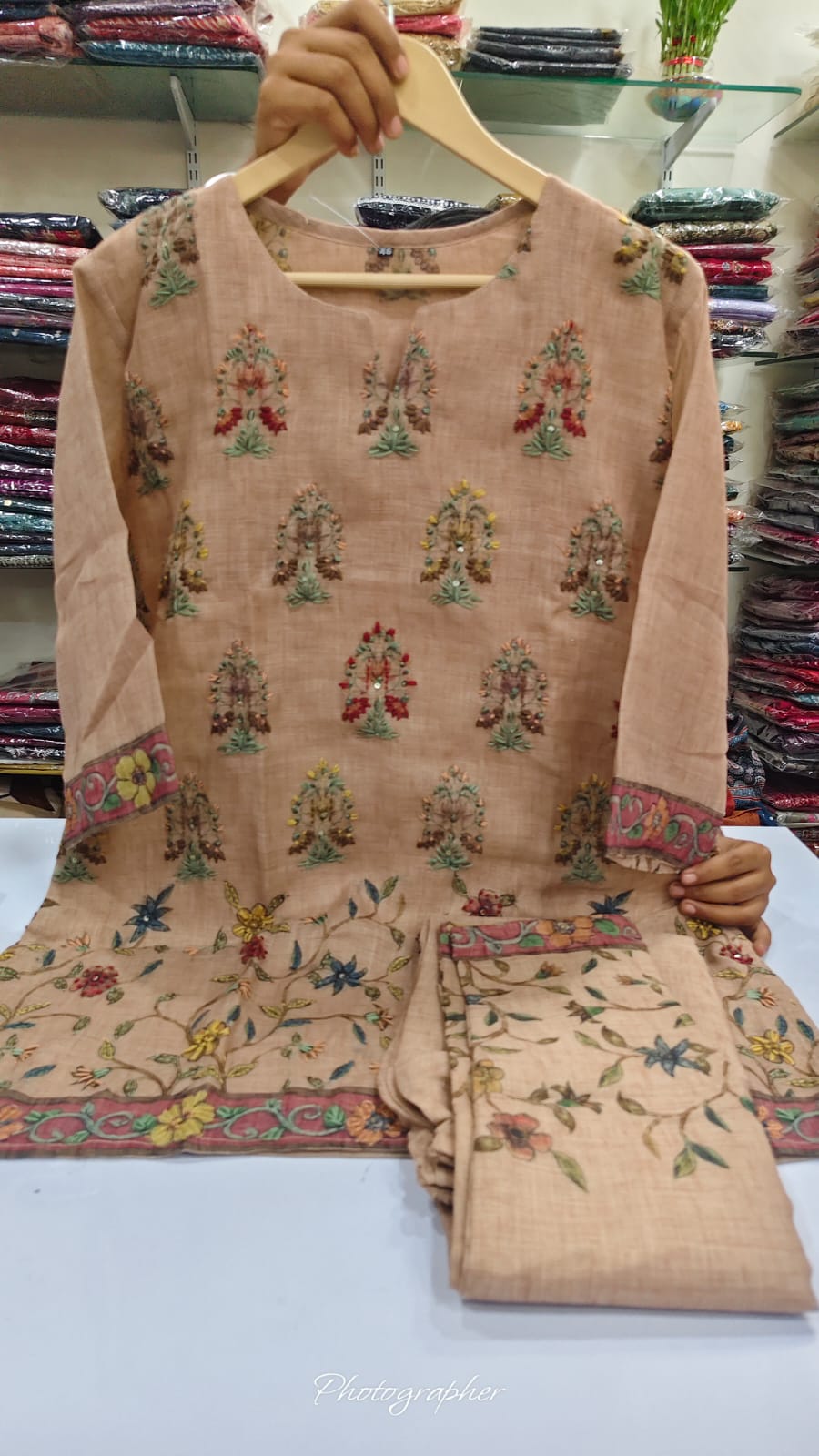 Light peach pitten work pure linen with lining two piece cordset (A764)
