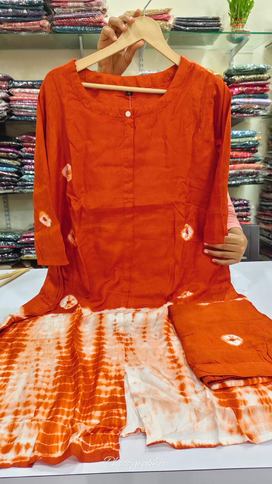Brunt orange pure mul silk with lining two piece cordset (A776)