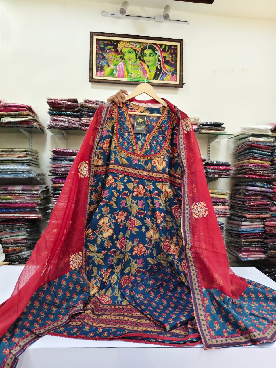 Blue pure cotton kalamkari fully flared three piece set (P2381)