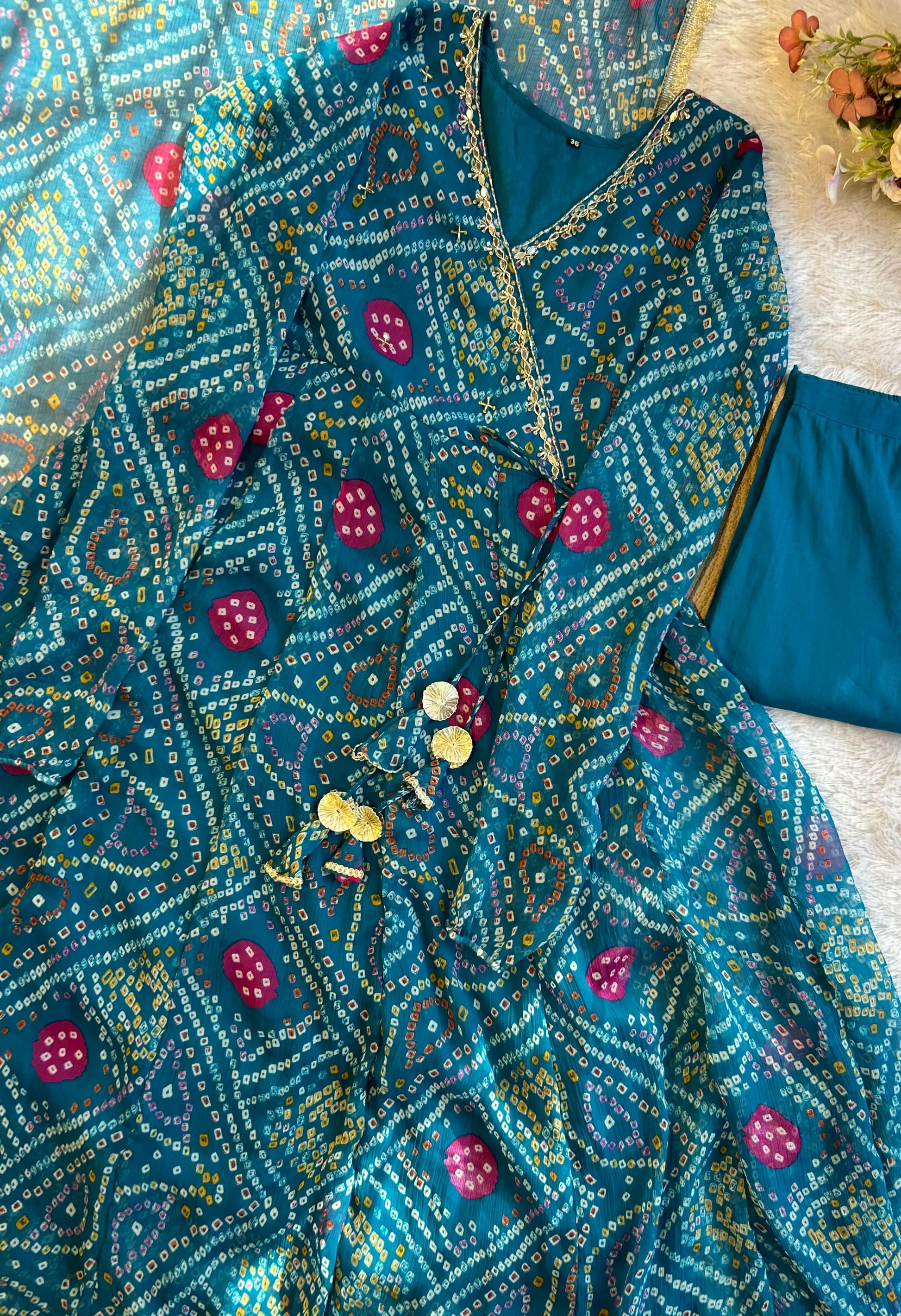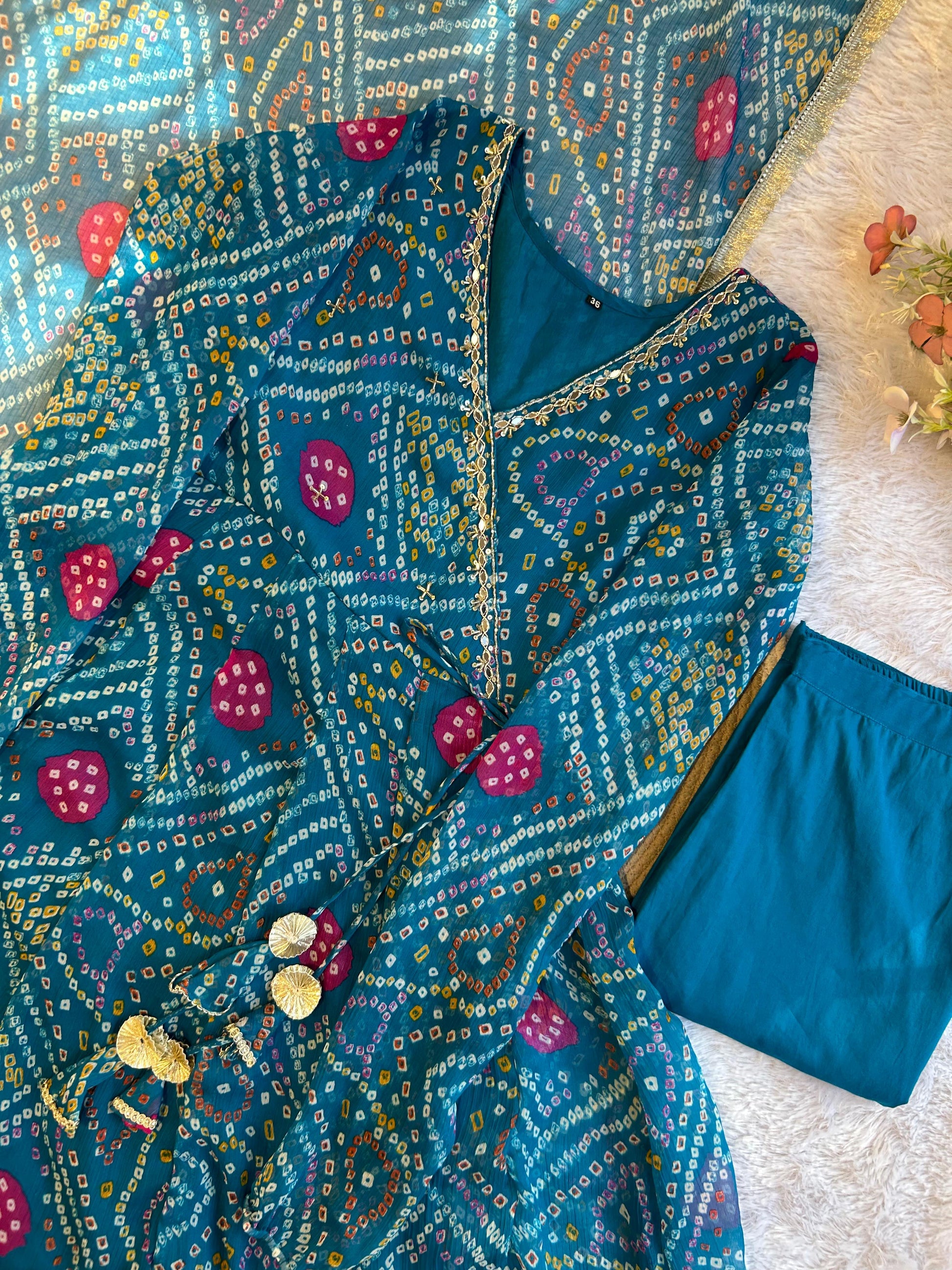 Pure chiffon bandani print designer three piece anarkali (A1258)